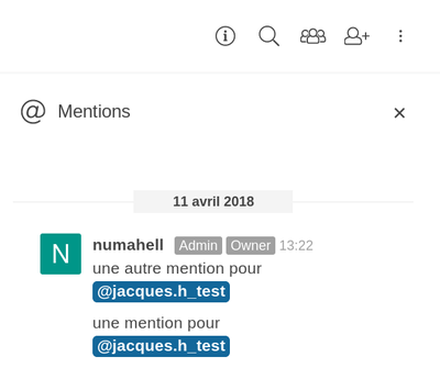 - Dans le menu du canal de discussion en haut à droite, cliquez sur "mentions" dans le menu