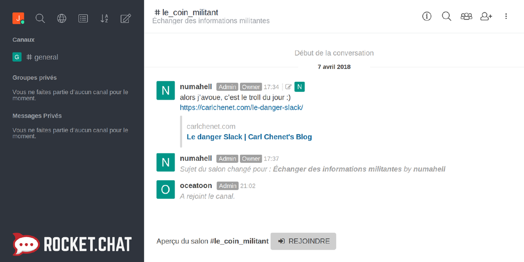 Vous obtenez un aperçu du canal : cliquez sur "rejoindre" pour confirmer.