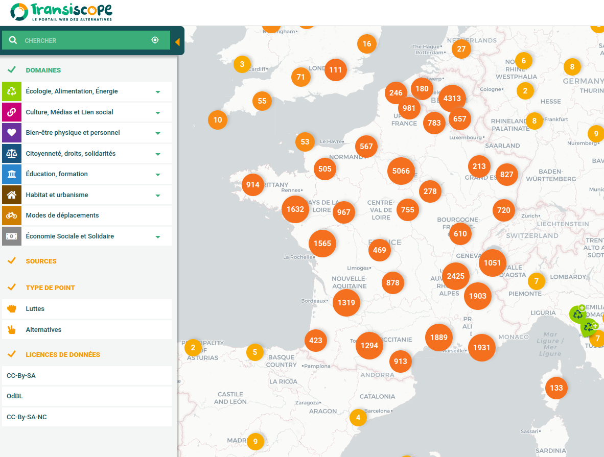 Transiscope est une cartographie numérique des acteurs et actrices de la transision à travers tout le territoire.